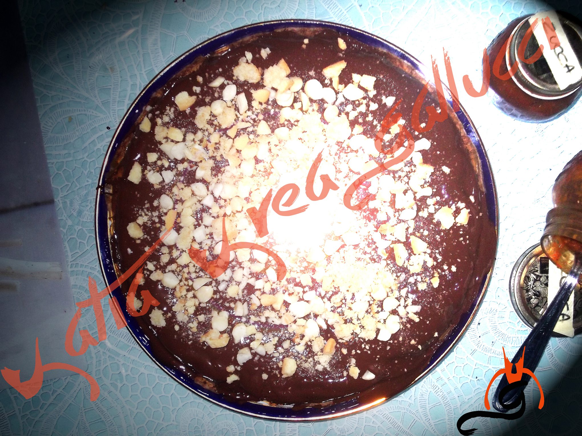 Torta con Confettantra * alla zucca ricoperta di cioccolato fondente e scaglie di mandorle,amaretti e pavesini