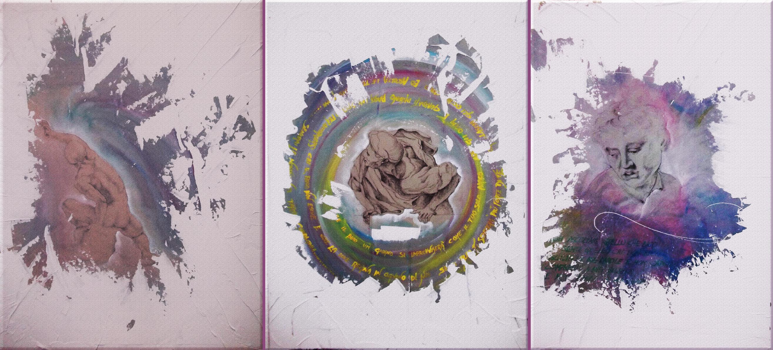 Con questo TRITTICO ho voluto sperimentare un nuovo ciclo che richiama la leggerezza dello Spirito e la pesantezza della Materia