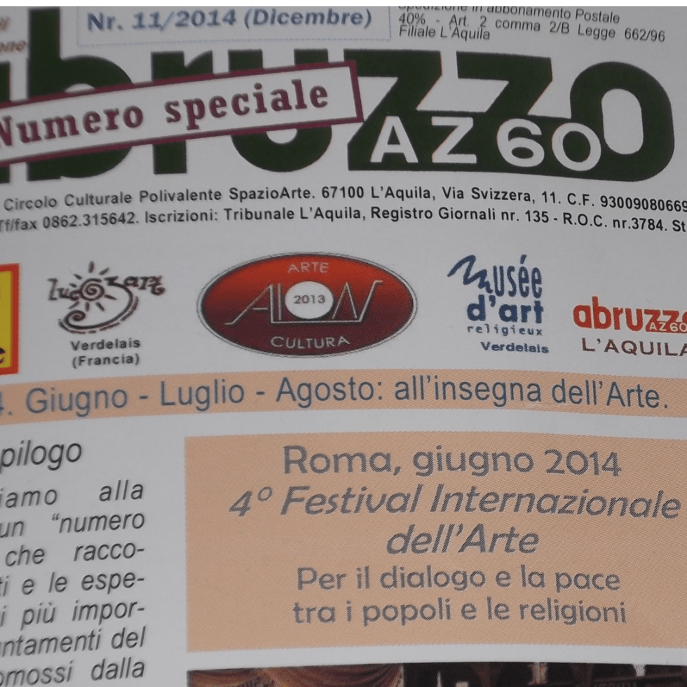 gennaio 7, 2015 L’opera “La Piccola Matita di Dio: Madre Teresa” sul periodico Abruzzo AZ60 di Emidio Di Carlo Direttore e Critico d’arte Continua a leggere →