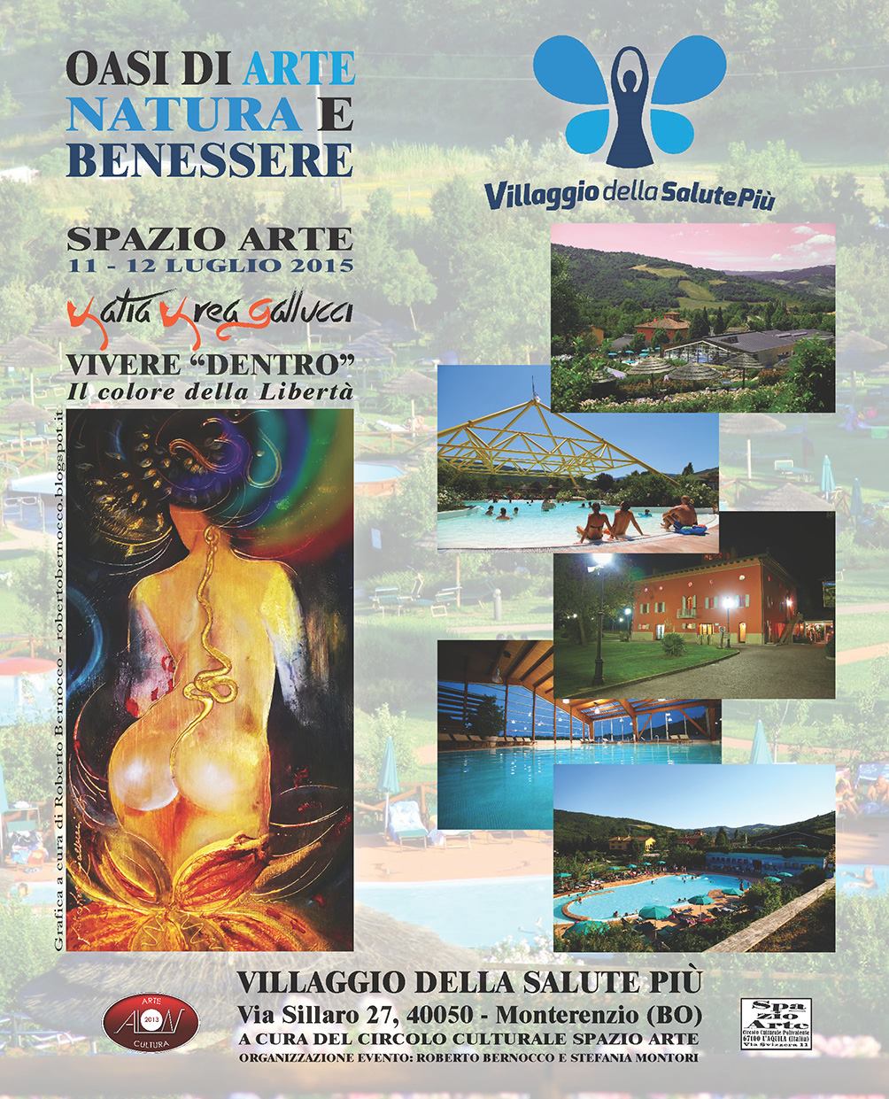 Questa mostra mi permette di ringraziare chi ha lavorato e lavora con e per me. Grazie allo scrittore e grafico Roberto Bernocco, alla dottoressa Stefania Montori curatrice d’Arte della Aion Arte Associazione, di cui faccio parte, presieduta dall’artista Massimo Bigioni. Grazie agli sponsor, la Rivista d’Arte Spazio Arte Abruzzo diretta dal Critico d’Arte Emidio Di Carlo e la struttura Villaggio della SalutePiù Monterenzio (BO) che tramite Massimiliano, promoter del Villaggio, ha aperto e dato inizio a questo magnifico Viaggio dedicato all’Arte, alla salute attraverso lo Yoga. Naturalmente invitiamo tutte le persone che amano l’Arte, lo Yoga ma soprattutto sperimentare nuove esperienze….a sabato 11 luglio 2015 alle ore 16,00