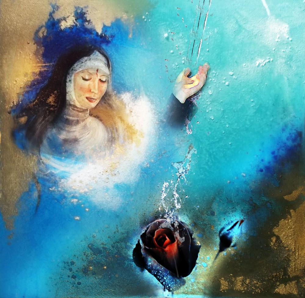 Titolo: Dolcezza – Dimensione cm 50×50 su legno Tecnica misto meterico Pigmentato