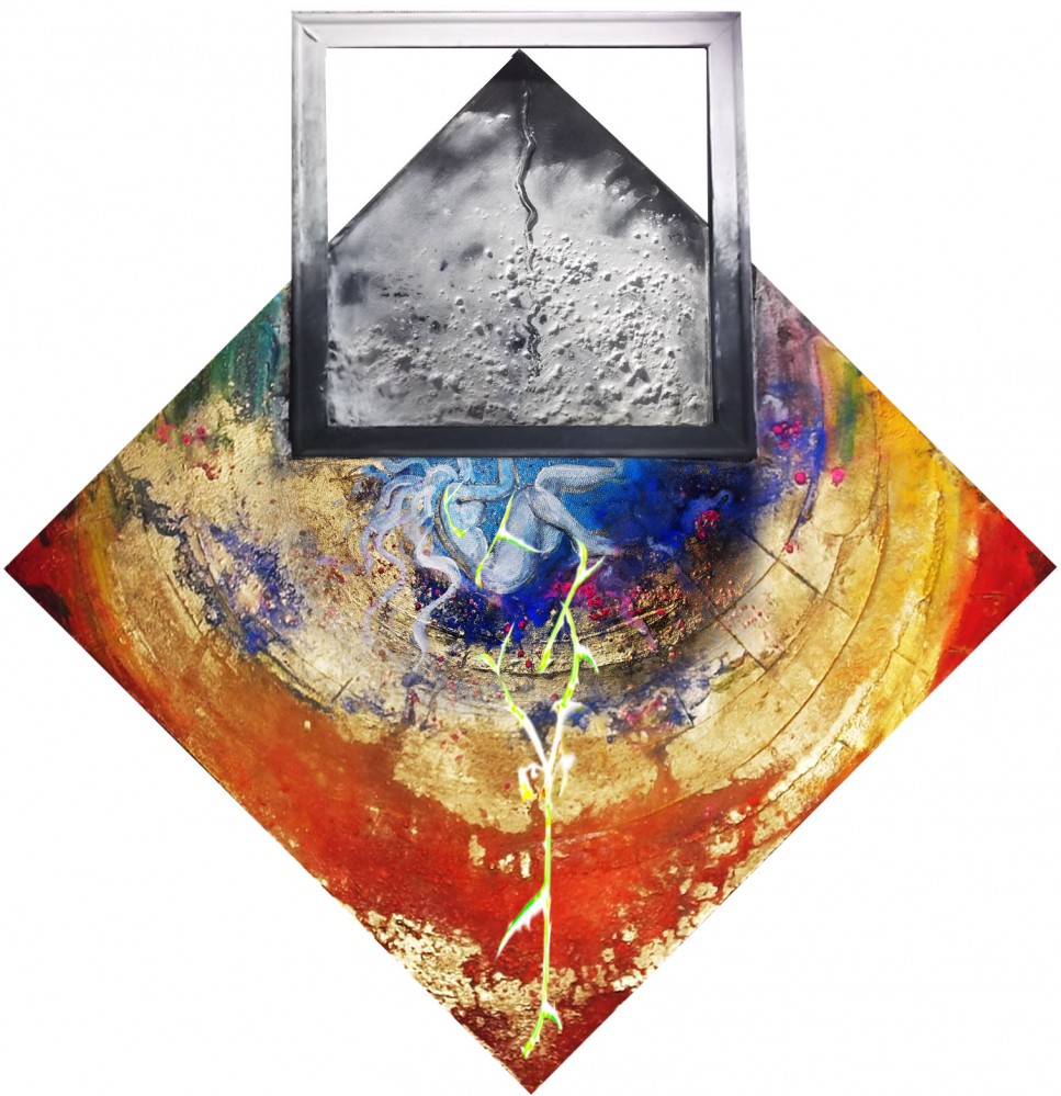 Titolo: Gioiello Luminoso – Dimensione cm 50×50 su legno Tecnica misto meterico Pigmentato